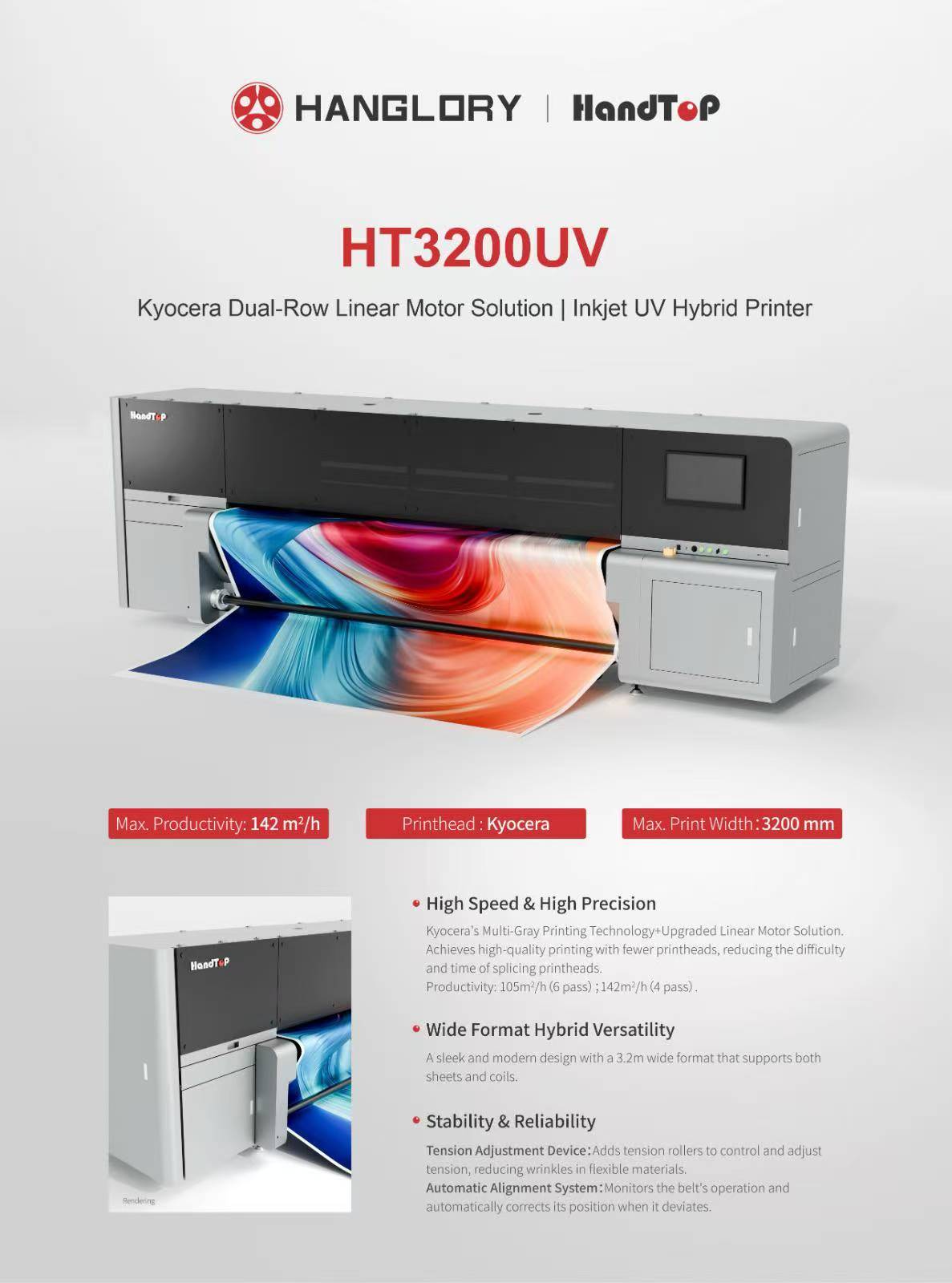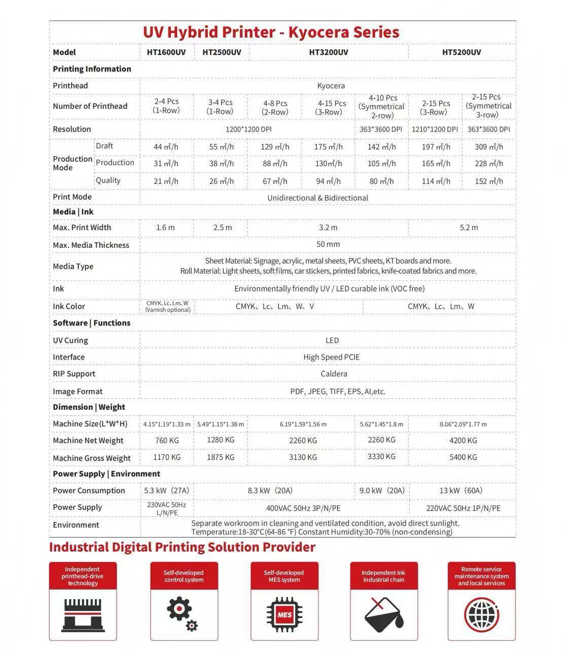 Multi-row Kyocera Solution : 175 ㎡/h (3-row) 129 ㎡/h (2-row) 142 ㎡/h (Symmetrical 2-row) Multi-row Ricoh Solution : 107 ㎡/h (4-row) 93 ㎡/h (3-row) 74 ㎡/h (2-row) PrintheadKyocera & GEN6 Requires ADP / Computer
