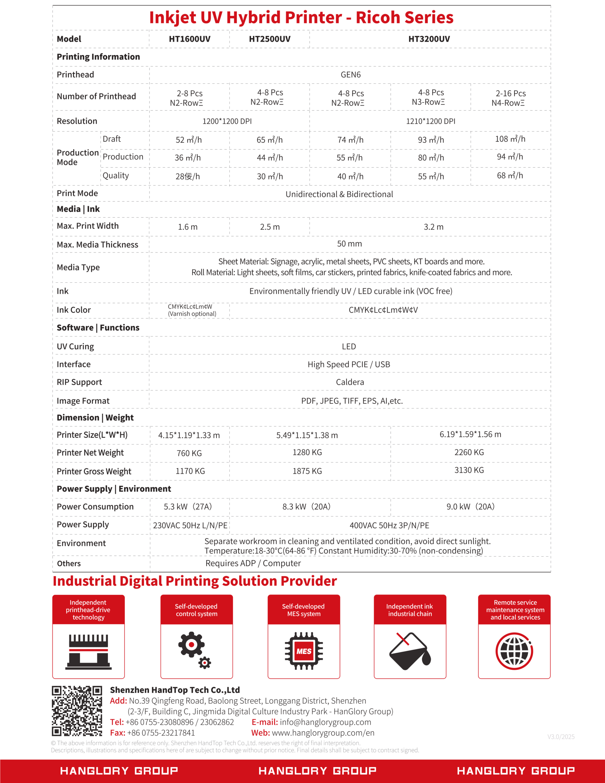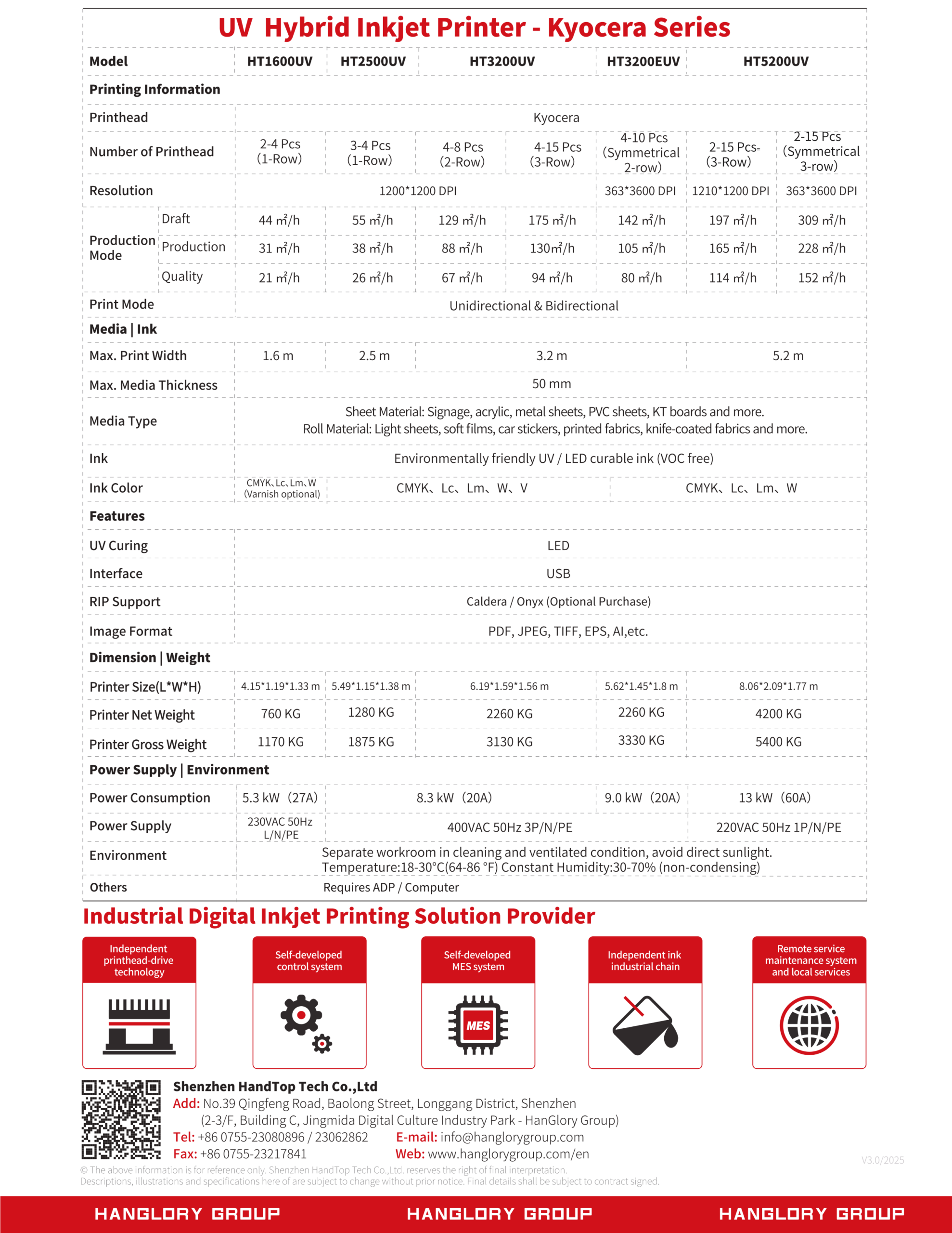 Hybrid UV printer designed to support both rigid and roll printing with versatile multi-row Kyocera or Ricoh printhead configurations, offering up to around 175 m²/hour productivity (depending on head setup) and high-definition UV output for signage and large-format graphics applications. This model blends flatbed and roll-to-roll capabilities to handle a wide range of materials, helping users produce vibrant, durable prints across rigid boards, vinyl, banner, and other substrates.
