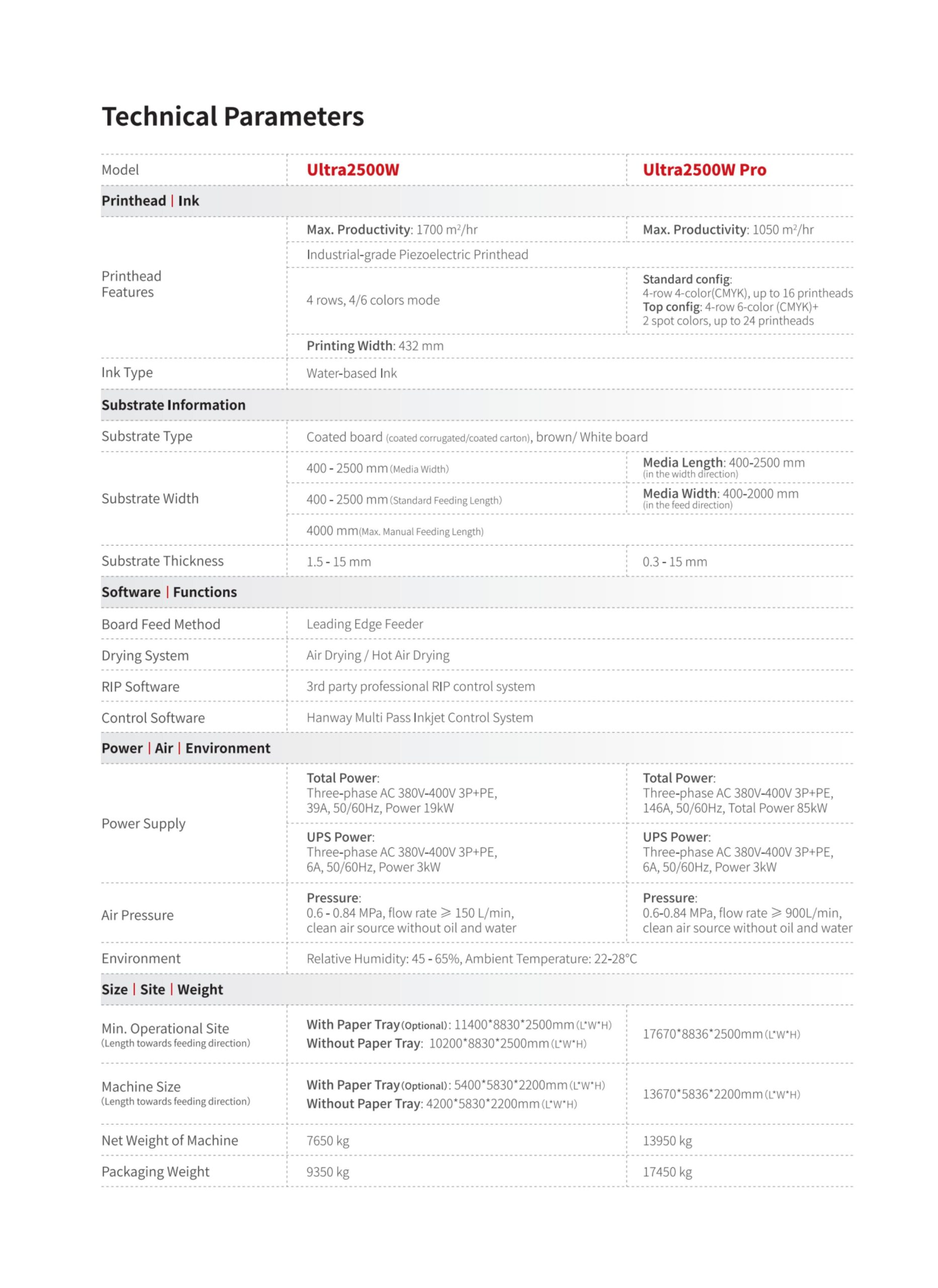 Max. Productivity1700 ㎡/hr (4-row) Printhead Width432 mm/scan Print MediaCoated/Brown/White/Board Colors :4/6 Colors Optional New Printhead Water-cooling Circulation System New Closed-loop Control System (Optional)